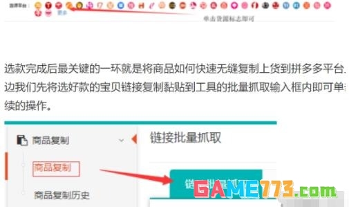 3、选款完成后最关键的一环就是将商品如何快速无缝复制上货到拼多多平台上去,首先将这边我们先将选好款的宝贝链接复制黏贴到工具的批量抓取输入框内即可单击下一步进行后续的操作。