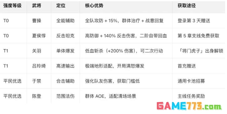 注意:T0 级武将「郭嘉」「荀彧」暂未开放获取,后续活动将上线,可提前预留养成资源。