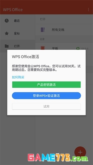 1、在手机上下载并安装WPS Office Pro,打开软件会弹出以下页面;