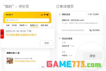 到店美食团购:单用户发表评价,每天最多 10 条、每周最多 50 条可获得积分