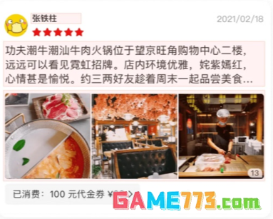 3、发布满 100 字且不少于 3 张图,除美食团购业务奖励随机积分外,其他业务均额外奖励固定 100 积分