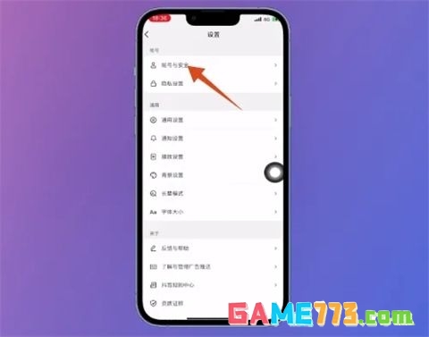 把设置页面打开之后,点击页面上方的【帐号与安全】。