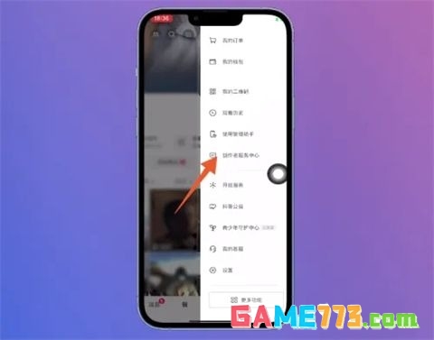 打开更多菜单窗口后,选择【创作者服务中心】并点击。