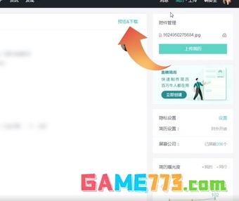 2.点击之后进入个人简历页面,在页面的右上角有一个预览下载的功能,点击该功能。