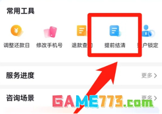 4. 页面跳转后,在“常用工具”下方点击选择“提前结清”,进入后根据提示去操作完成即可。