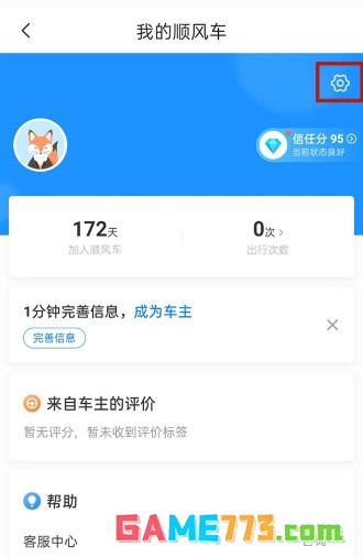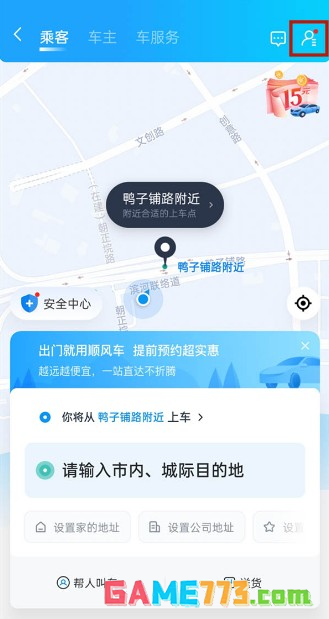 2、进入哈啰顺风车界面之后,点击右上角的【个人信息】。