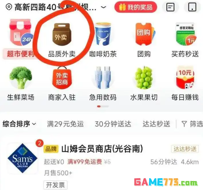 2、在秒送页面中找到品质外卖功能,在里面挑选想要下单的商品
