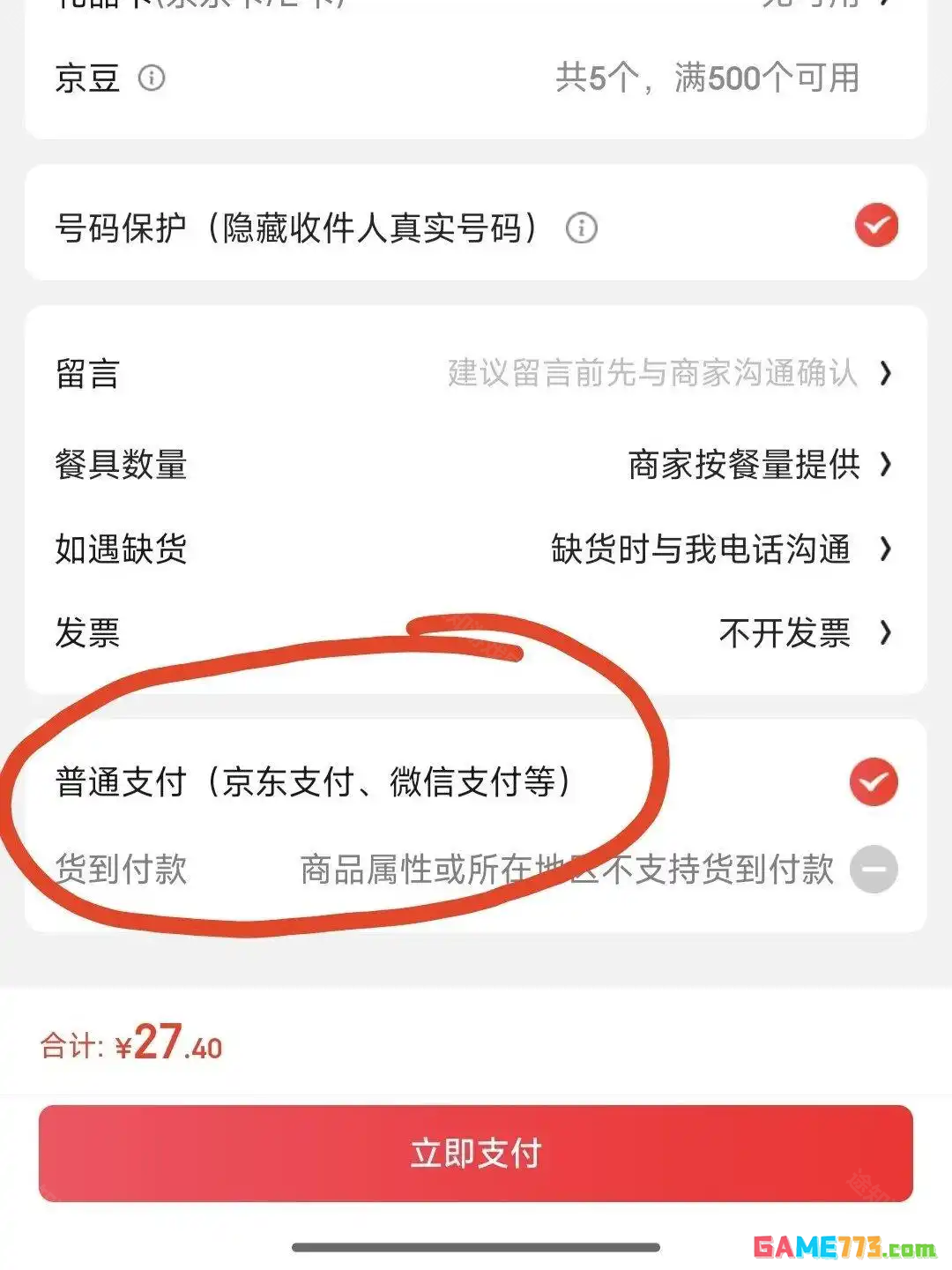 3、挑选完毕后点击支付,目前京东外卖仅支持京东支付、微信支付和货到付款这3个支付方式