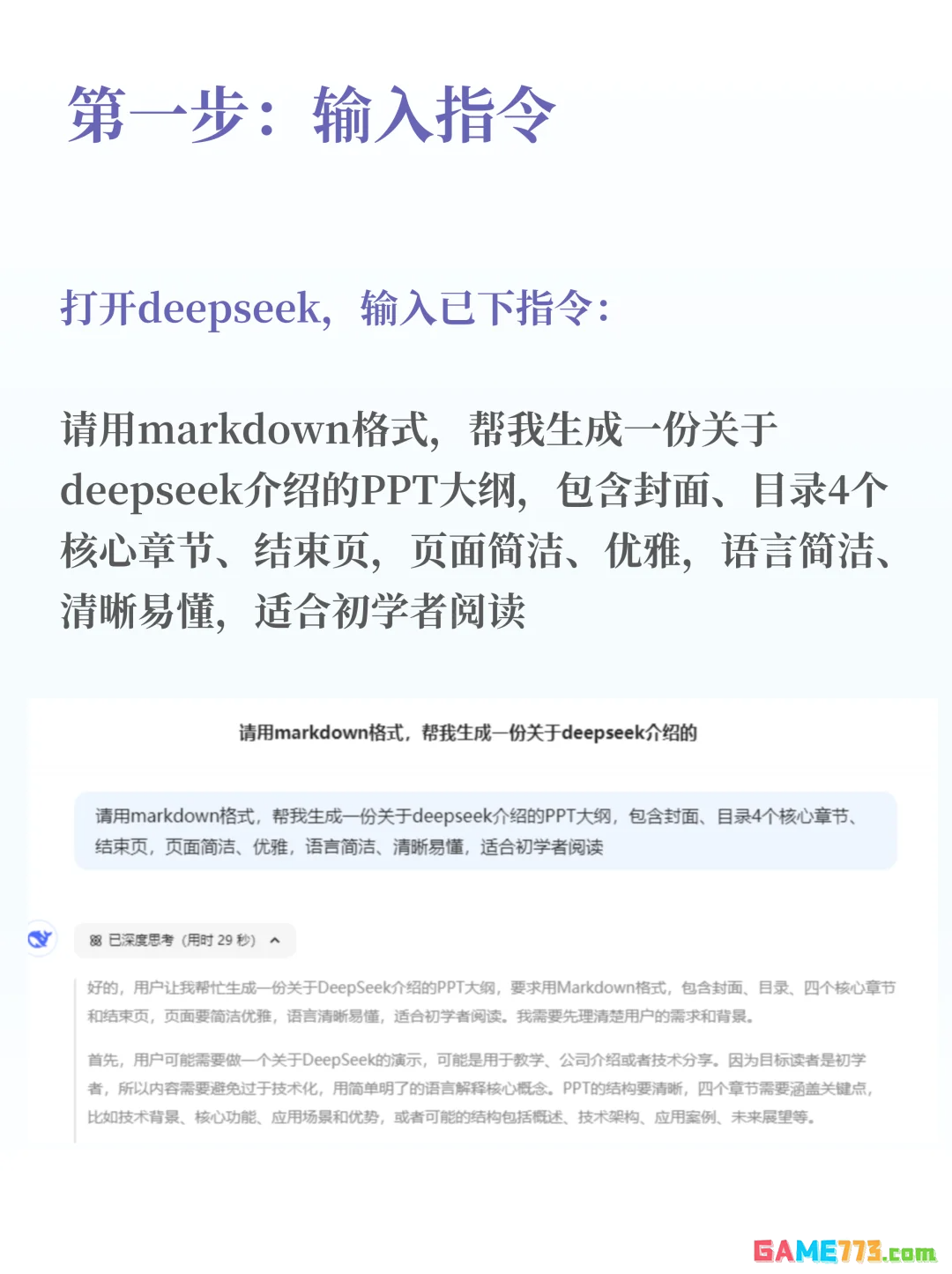 1、首先打开deepseek,输入下方指令:
