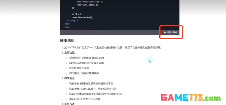 2、 等待deepseek生成好所有代码,点击代码右下角的运行html,这样我们就可以预览动画效果,同时还可以继续发送提示词让DeepSeek进行修改