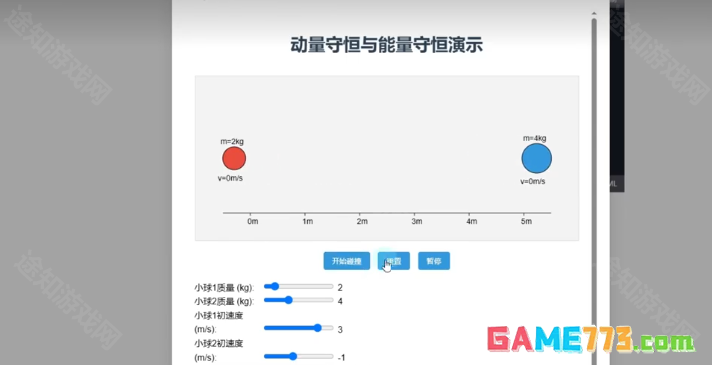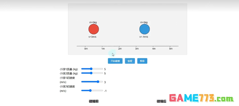 我是一个物理老师,想通过小球碰撞后速度变化的动画,展示动量守恒与能量守恒的原理,请帮我制作一个动画讲解,以html格式输出