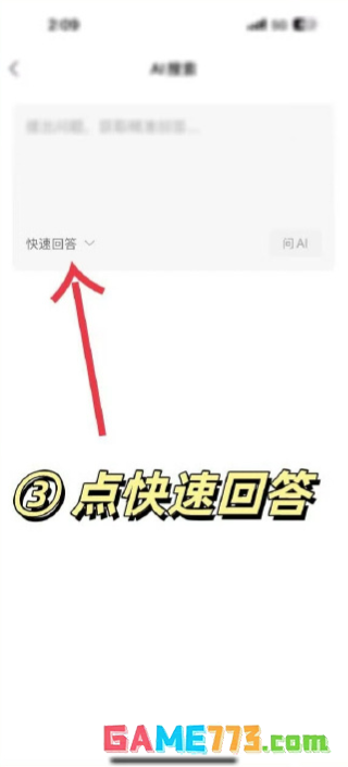 3、这时我们会来到AI搜索界面,点击左下方的快速回答