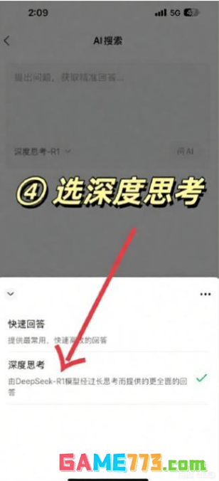 4、在新弹窗中选择深度思考即可,之后我们输入要提问的信息后回答我们的就是DeepSeek啦