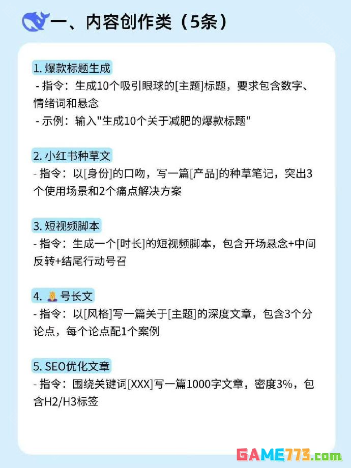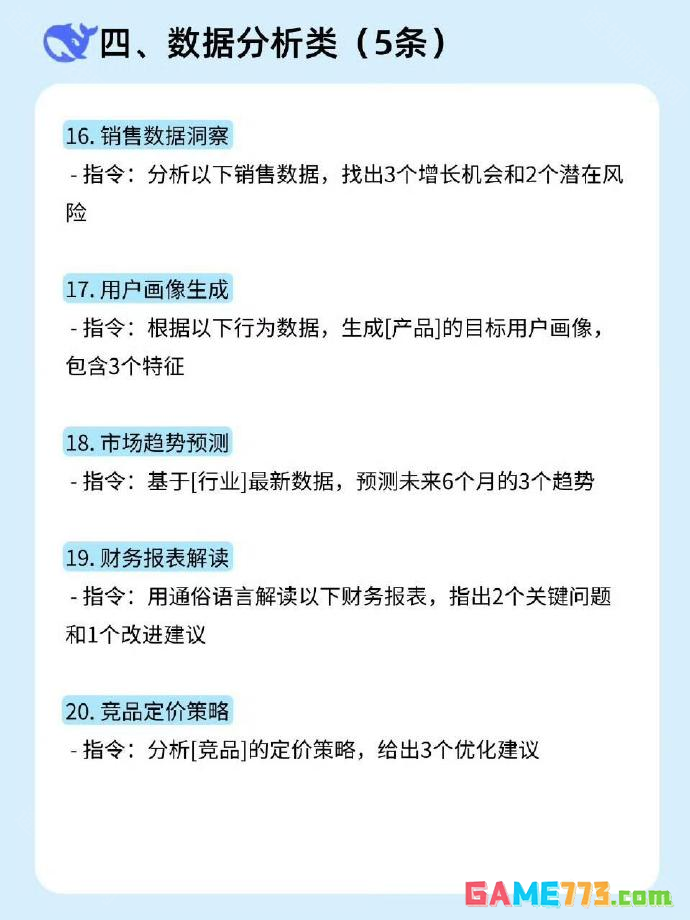 DeepSeek万能提问公式,deepseek万能公式详解,想要DeepSeek生成优质回答的提示词,需要用户在提问时在问题中加入角色、任务、格式、背景的万能公式。首先为AI设定一个明确的专业角色,然后描述你的核心任务与具体目标。接着说明用户需要的回答格式,并提供必要的背景信息以限定范围。这样的指令可以提升AI的理解准确度与输出相关性,详细的指令就来一起看看小编为你们准备公式词吧!