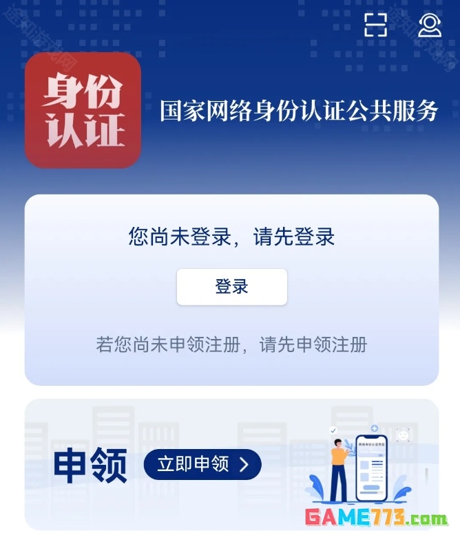 1、打开国家网络身份认证app,在主页面可以看到【立即申领】的选项,点击进入