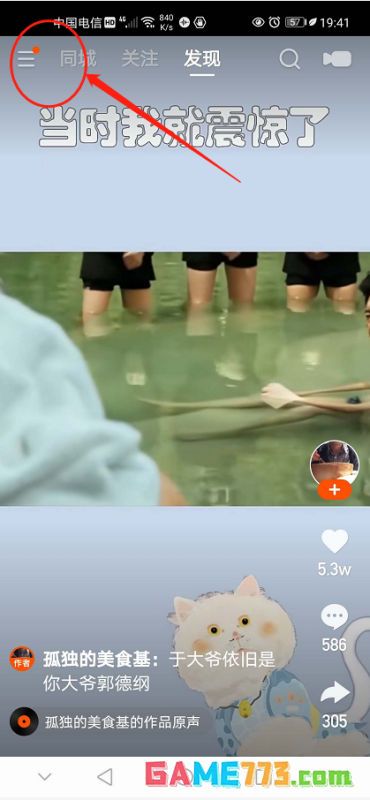 1、首先在手机上打开快手应用,在主界面的左上角找到更多选项并点击。