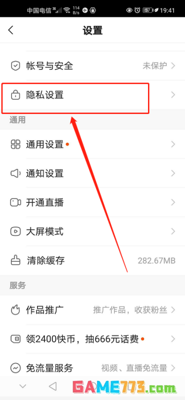 3、在设置列表中找到隐私设置,点击隐私设置。