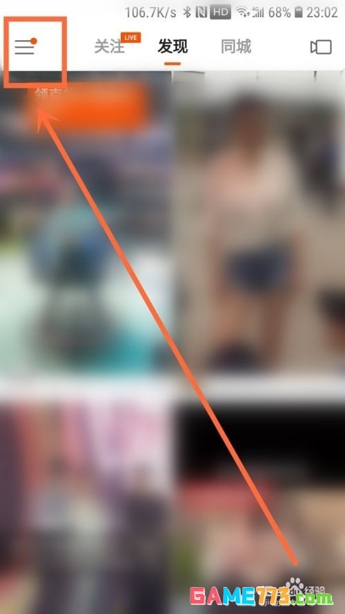 进入快手首页界面后,点击下左上角的三横图标进入。如下图所示