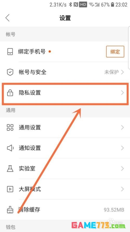 进入设置界面后,点击下隐私设置进入。如下图所示