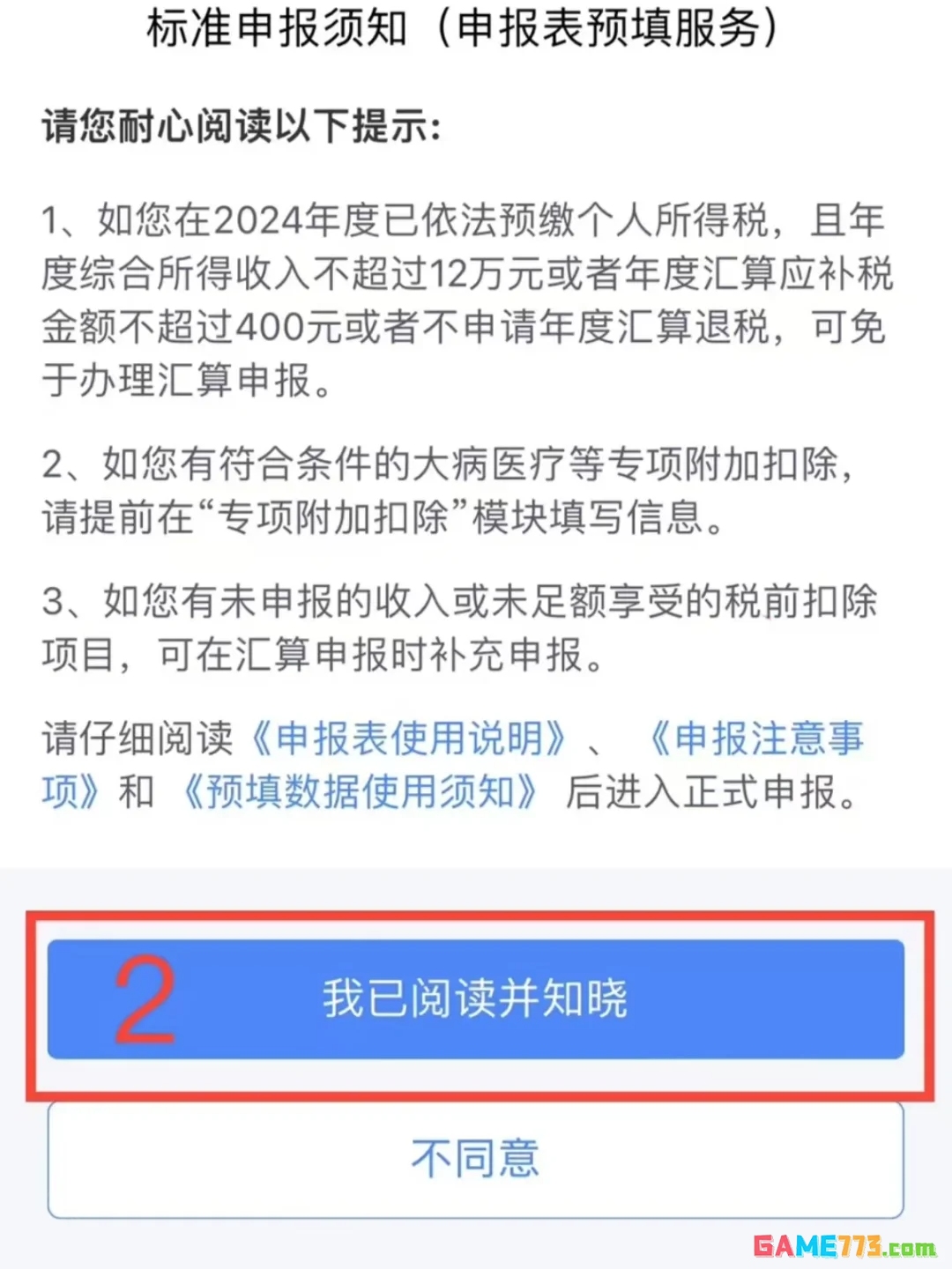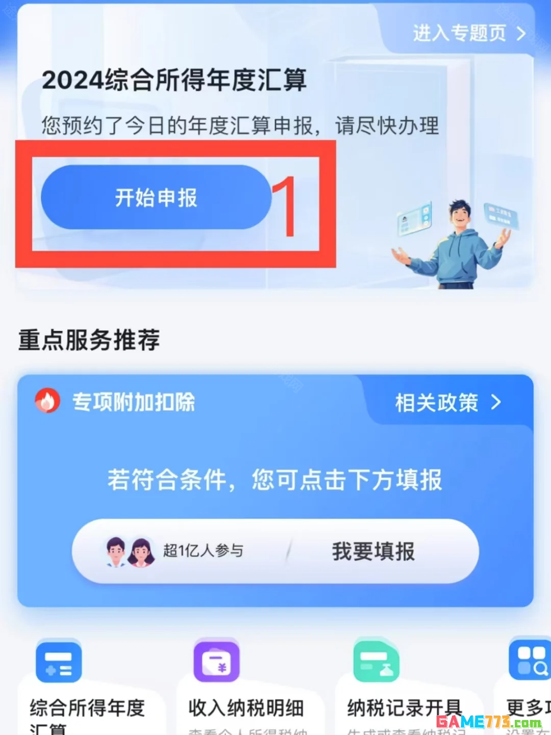 下载安装完毕后我们打开App,点击2024综合所得年度汇算下方的开始申报