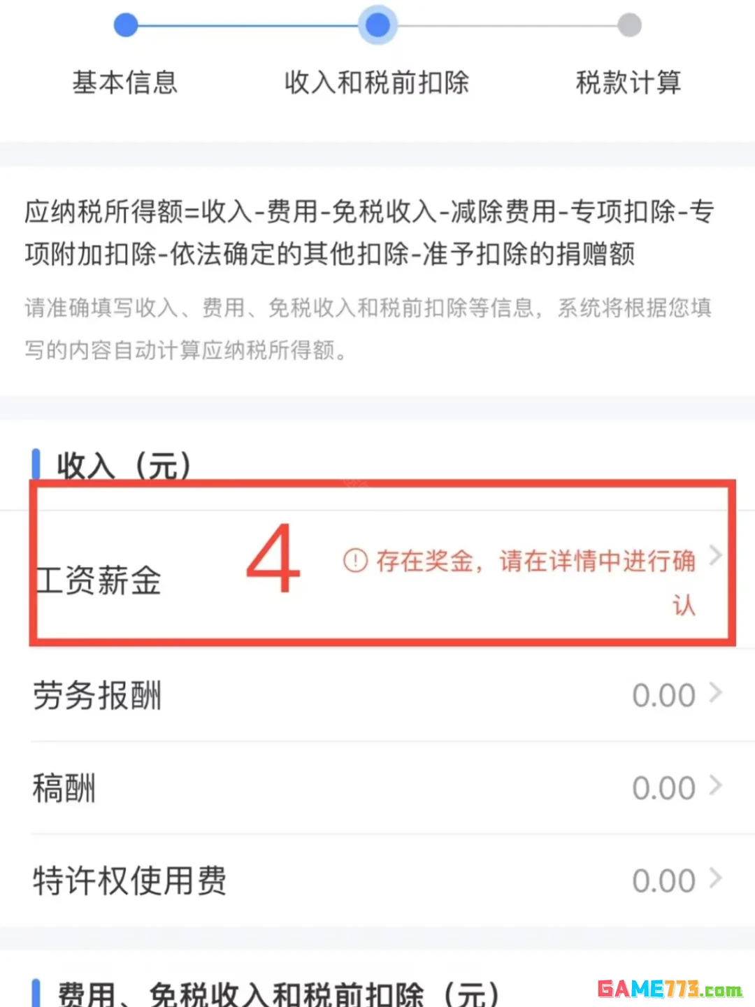 6、这时软件会自动计算其他项目数据,同时左下角会显示应纳税所得额,确认后点击下一步