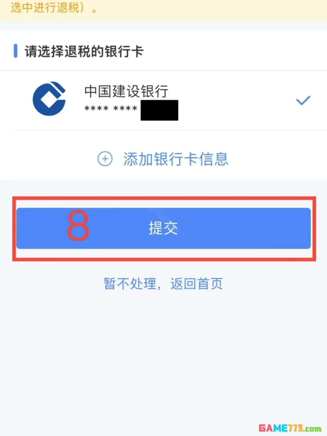 7、这时App会显示我们的减免税额、已缴税额和应退税额,确认后再次点击下一步