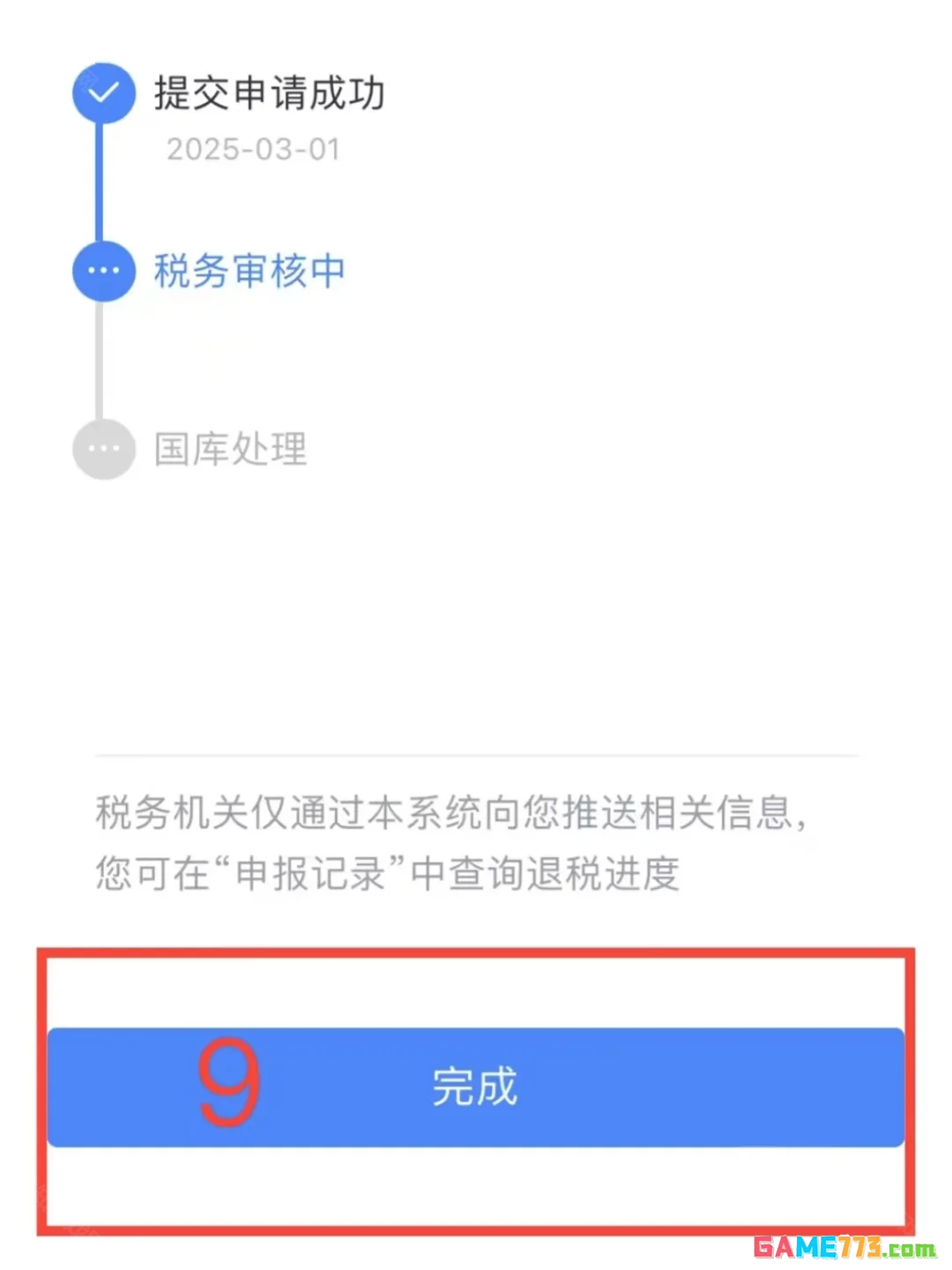 9、这样整个申请流程就完成了,等待审核完毕后就会自动将税额退至我们的银行卡中