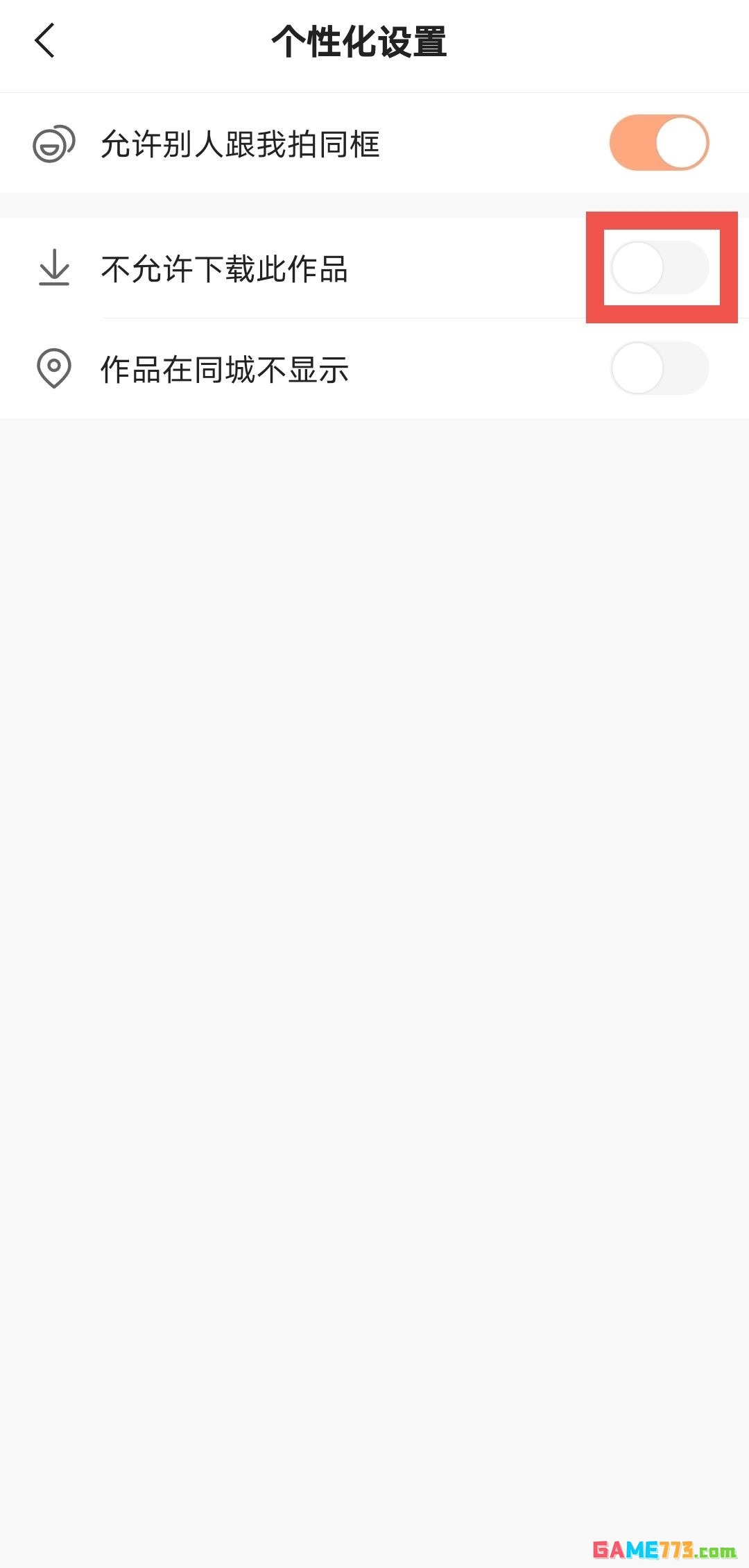 4、最后点击启用【不允许下载此作品】(如图是未开启状态),即可完成。