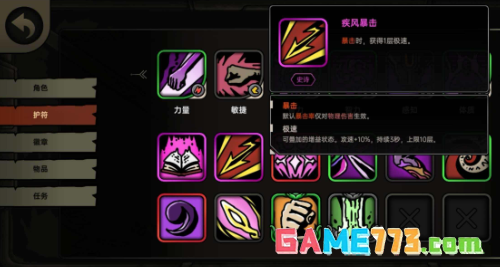 腐蚀效果更是重中之重中毒效果越多暴击效果越强大,对于很多玩家来说暴击是最强的加伤害的效果,随着中毒的层数增加,对于怪物的伤害也就越高,这个效果非常适合对付血量厚的关卡boss,让许多玩家都能强强针对敌人,让各位的输出能力不在某些boss这里卡壳,再搭配疾风暴击,让玩家暴击之后能最高叠加十层攻速,实现攻击速度翻倍的效果。
