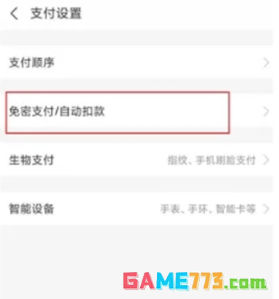3、在【支付设置】中,点击【免密支付/自动扣款】项。
