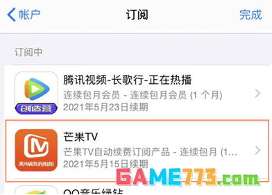 3、点击【芒果TV续费】项目,进入后点击【取消订阅】即可。