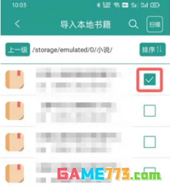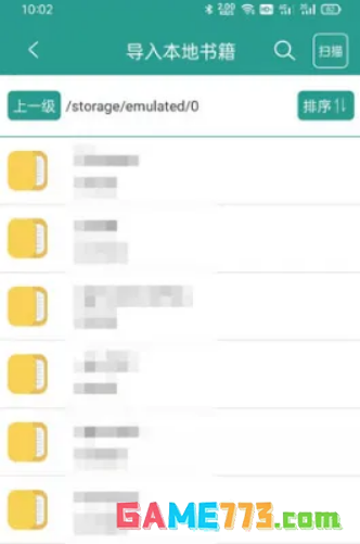 2、授权后点击手机返回按钮,进入手机目录,找到小说资源的所在文件夹,或直接点击“扫描”查找小说