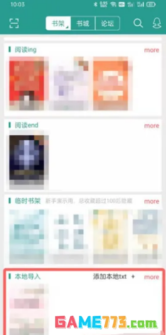 4、添加完成后,通过书架的【本地导入】类别找到刚刚导入的小说,点击可进行阅读。