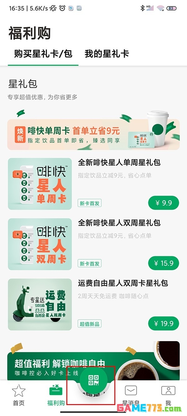2、点击星巴克app二维码图标,点击获取一张星礼卡,进入个人中心,找到星礼卡即可。