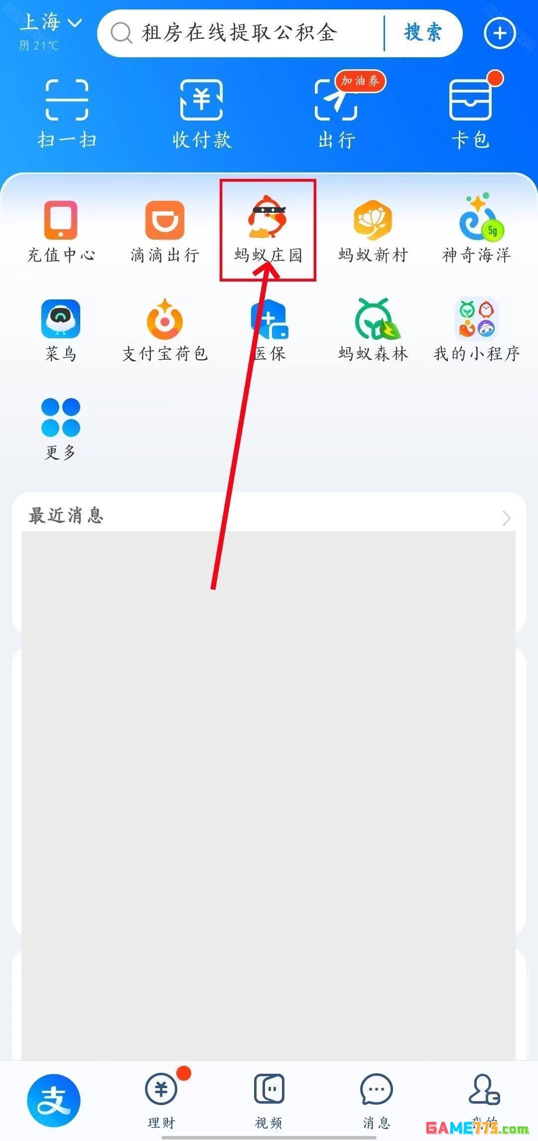 1、首先打开支付宝app,找到蚂蚁庄园点击进入。