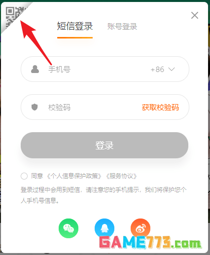 2、对当前弹窗的左上角【二维码】选项进行点击。