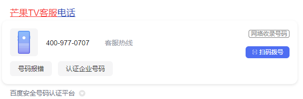 芒果TV客服电话:400-977-0707