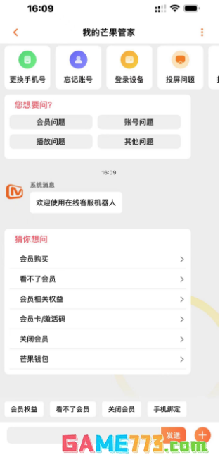 芒果TV手机版联系在线客服:【我的】-【帮助与客服】-即可与【在线客服机器人】反馈相关问题。