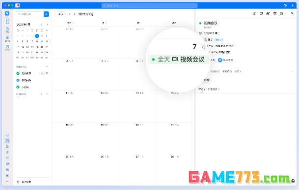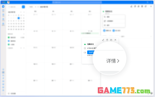 方式5:使用日历加入会议: 打开钉钉PC客户端并登录>>单击左侧日历图标>>单击选择想要进入的会议>>单击详情>>选择进入会议