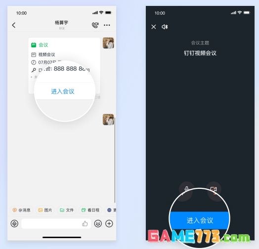 方式3:使用会议卡片加入会议:打开移动端APP>>在聊天窗口选择对方发送的会议卡片>>点击进入会议