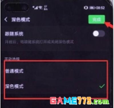 进入到深色模式的页面中,可以看到模式的选择,根据用户的需求随时切换模式即可。