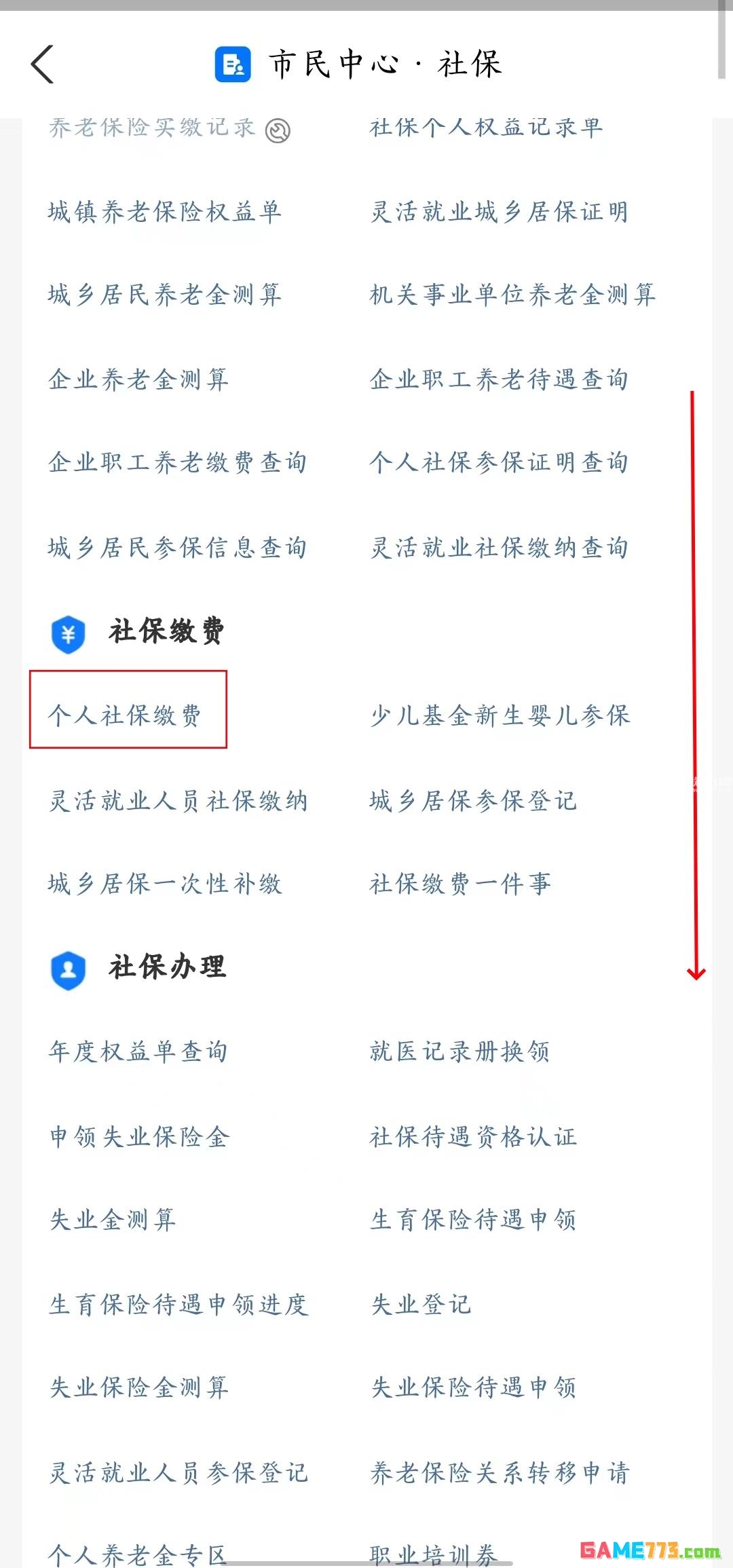 3、在社保页面选择社保缴费。