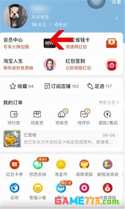 3、会员中心中有一个红色的框,红框中显示的数值就是大家的淘气值。