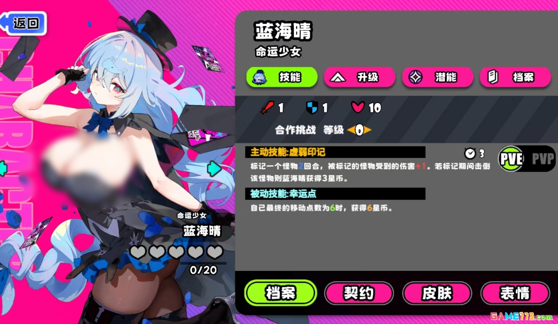 若是选用蓝海晴去参与PVE玩法,她可通过主动技能标记任何一个怪物,此效果可持续2回合,在此期间该怪物受到的伤害会额外加1点,且只要怪物被击倒(不是蓝海晴击倒的也可以),蓝海晴还能通过这一方式来获利3星币。因此,人们可让蓝海晴在第一回合就进行标记,并想办法在两回合内将标记的目标给消灭掉,让蓝海晴在前期能更快地积累资本进行发育。而到了中后期时,可让蓝海晴直接将标记放在boss敌人身上,这样不管谁去攻击它,造成的伤害都能增加1点。
