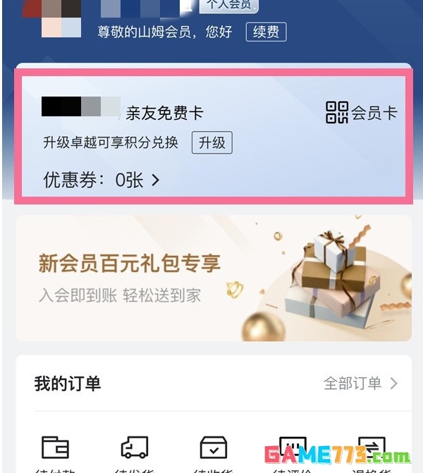 1、打开山姆会员商店微信小程序,在我的界面点击【去赠送】。