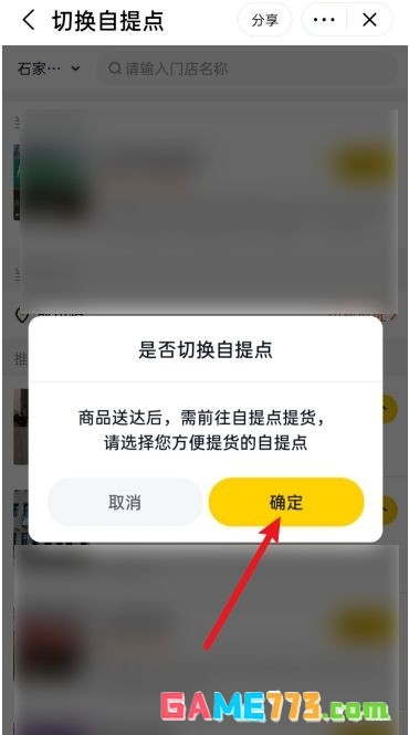 4、之后, 在弹出的是否切换自提点窗口,点击确定就可以了。