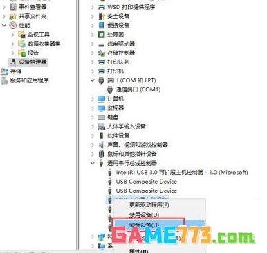 找到找到USB大容量存储设备,右键点击选择卸载。
