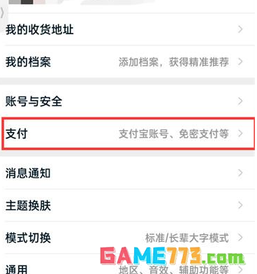 3、接着在设置的页面中点击【支付】