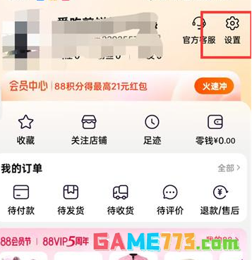 2、然后来到个人中心的页面中点击右上角的【设置】图标