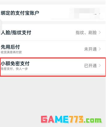 4、进入到支付设置的页面点击【小额免密支付】